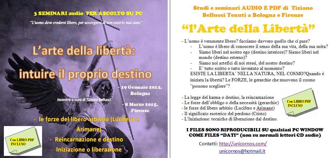LE CONFERENZE SONO SCARICABILI in formato WMA per ascolto su PC tramite un libero contributo via Paypal o bonifico. Facendo richiesta specifica (indicando titolo e data) al Team di Divulgazione in fondo a questa pagina.