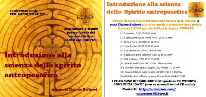 LE CONFERENZE SONO SCARICABILI in formato WMA per ascolto su PC tramite un libero contributo via Paypal o bonifico. Facendo richiesta specifica (indicando titolo e data) al Team di Divulgazione in fondo a questa pagina. Una singola conferenza : libero contributo L'intero ciclo di studi: libero contributo   Panoramica sulla scienza dello spirito … Leggi tutto Introduzione alla scienza dello spirito antroposofica