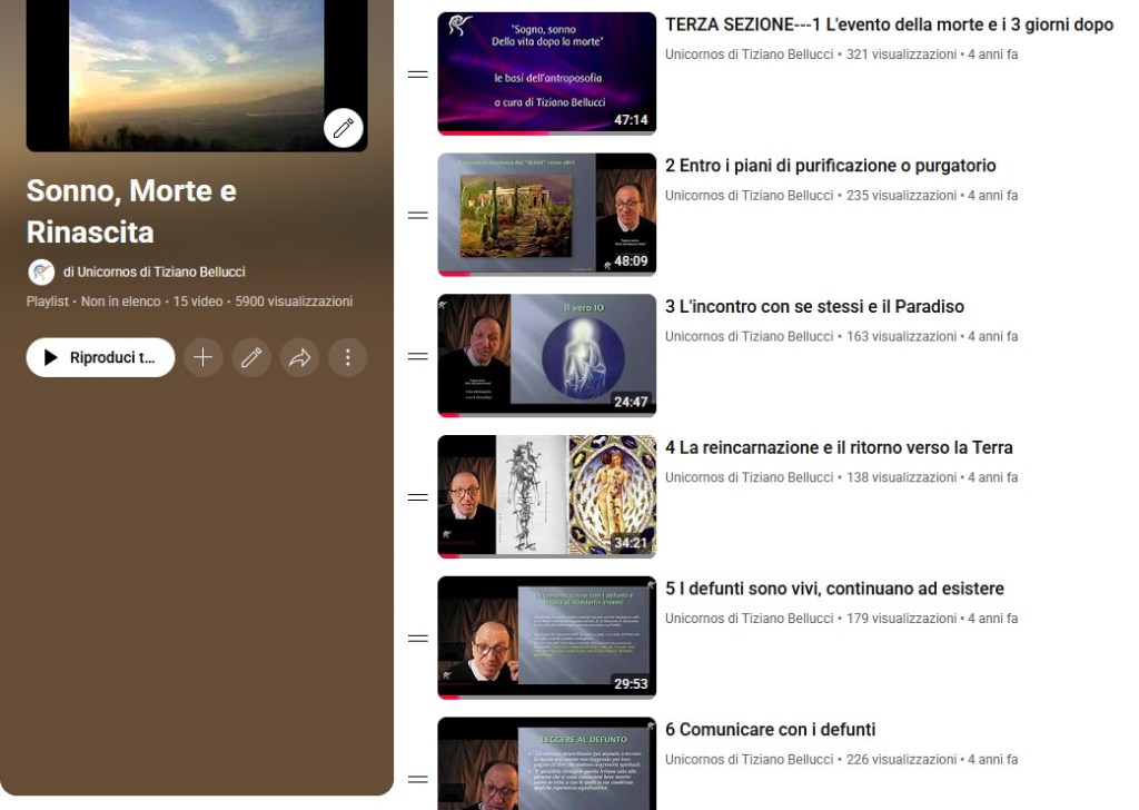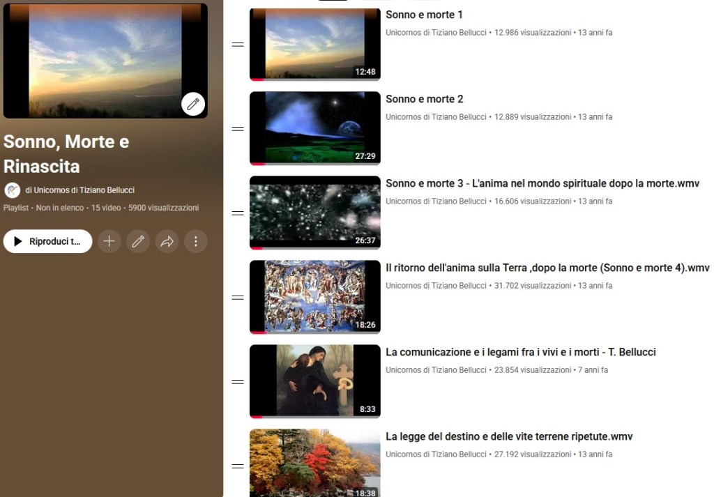 L’iscrizione permette la possibilità di partecipare alla diretta zoom e di ricevere (facoltativamente) una Playlist inedita “SONNO, MORTE E RINASCITA” contenente 15 video preregistrati da Tiziano Bellucci di 30 minuti l’uno per approfondimenti sul tema della vita nell’aldilà, della comunicazione con i defunti (vedi esempi e titoli a fondo pagina)