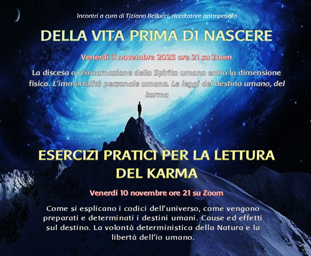 La discesa o reincarnazione dello Spirito umano entro la dimensione fisica. L’immortalità personale umana. Le leggi del destino umano, del karma