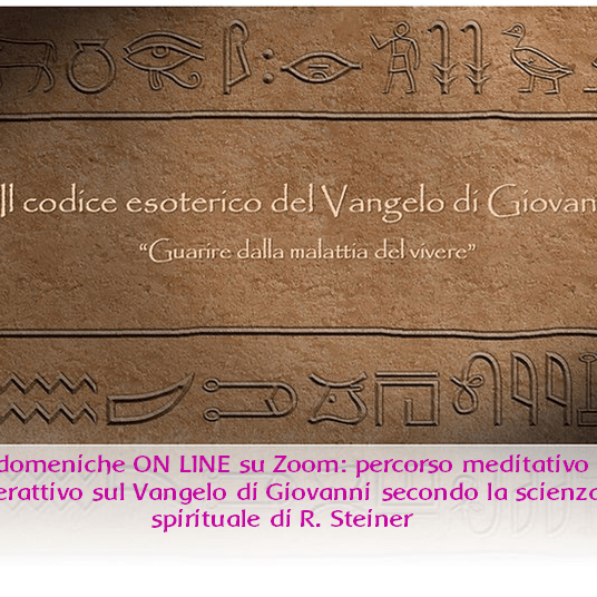 Una domenica mattina al mese da ottobre 2022 ad aprile 2023, dalle 9.30 alle 13, in sette incontri ON LINE su Zoom: percorso meditativo interattivo sul Vangelo di Giovanni secondo la scienza spirituale di R. Steiner https://www.unicornos.com/post/il-codice-esoterico-del-vangelo-di-giovanni