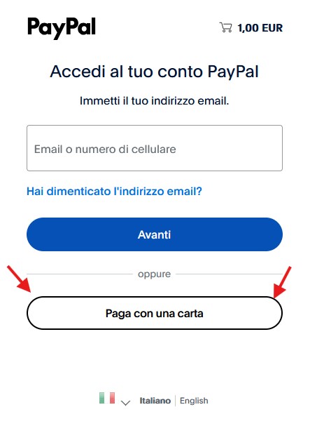 PAGAMENTO TRAMITE Carta di credito (cliccando sui simboli delle carte sotto)
